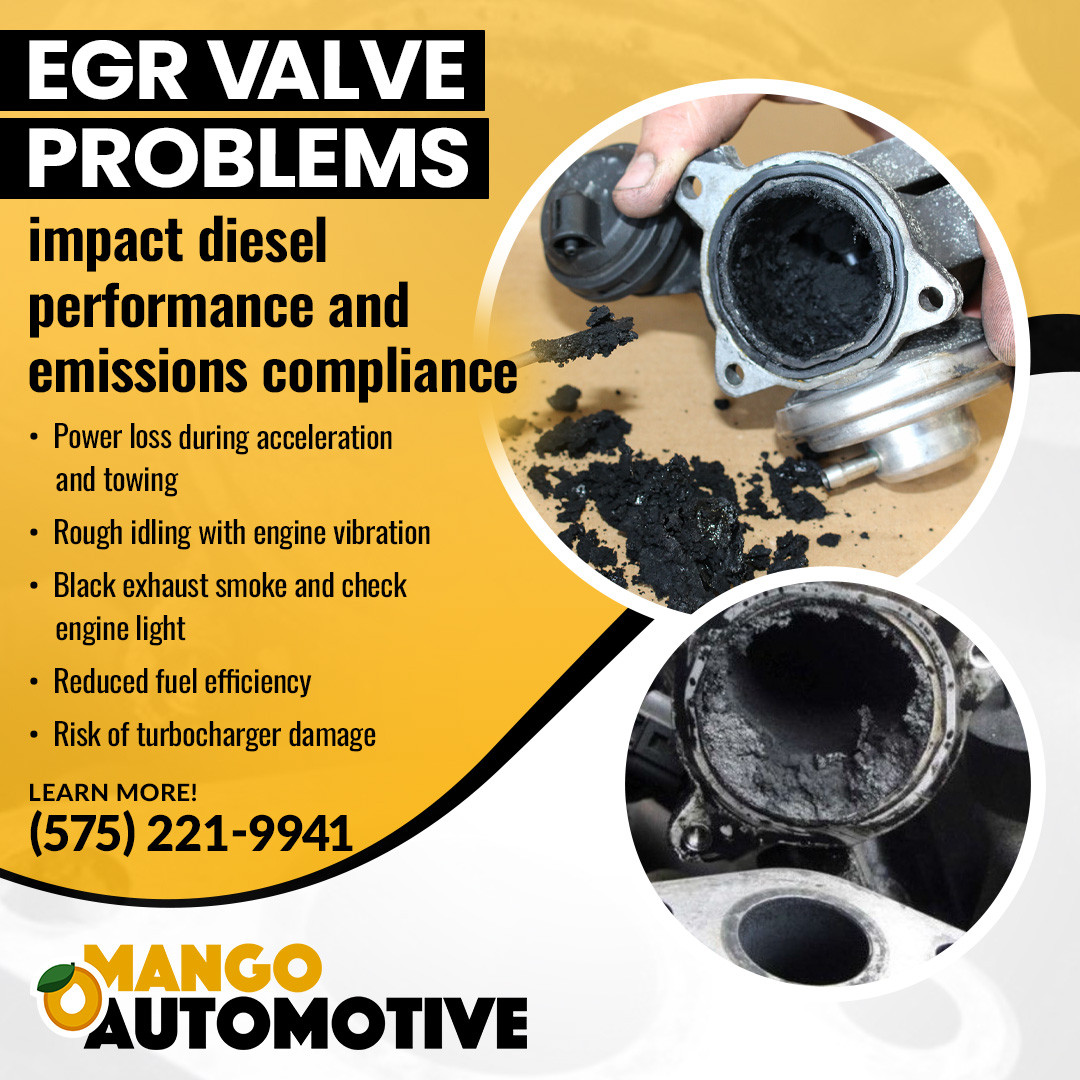 Las Cruces, NM - EGR valve failures are a common cause of performance issues in diesel trucks operating in the harsh climate of southern New Mexico. Mango Automotive & Diesel now provides targeted diesel repair in Cruces to address these problems, helping drivers resolve power loss, emissions faults, and engine inefficiency caused by faulty exhaust components.