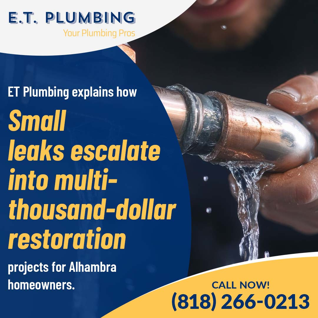 Pasadena, CA – A minor drip under the kitchen sink or a faint ceiling stain can be the first sign of a much bigger, and costlier problem. Small leaks rarely stay contained, and the damage often extends far beyond the water bill. E.T. Plumbing LLC has observed that minor repairs addressable for a few hundred dollars can escalate into extensive restoration projects costing thousands when left unattended.