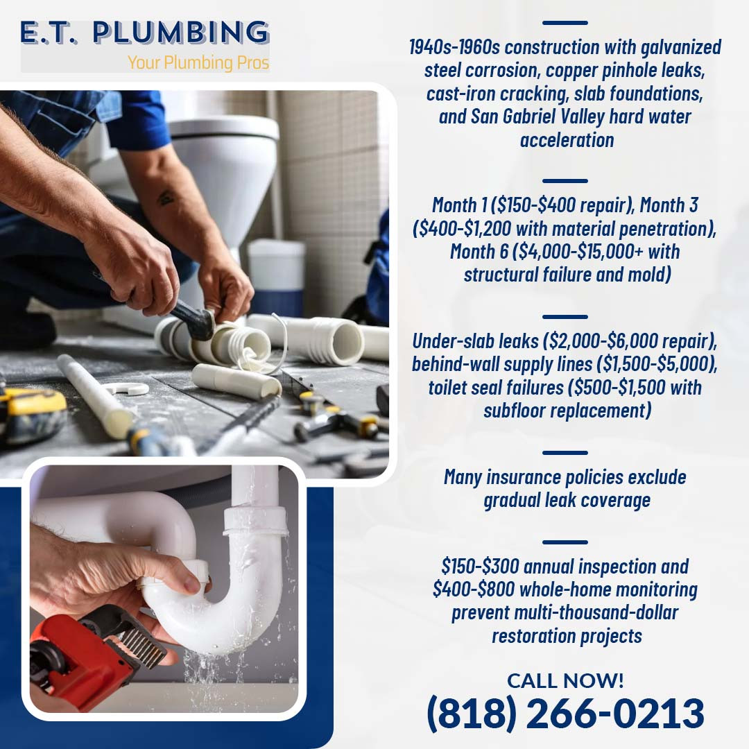 Pasadena's housing stock presents specific vulnerabilities that accelerate leak-related damage. Many local homes were constructed between the 1940s and 1960s, placing original plumbing systems near or beyond their intended operational lifespan.
