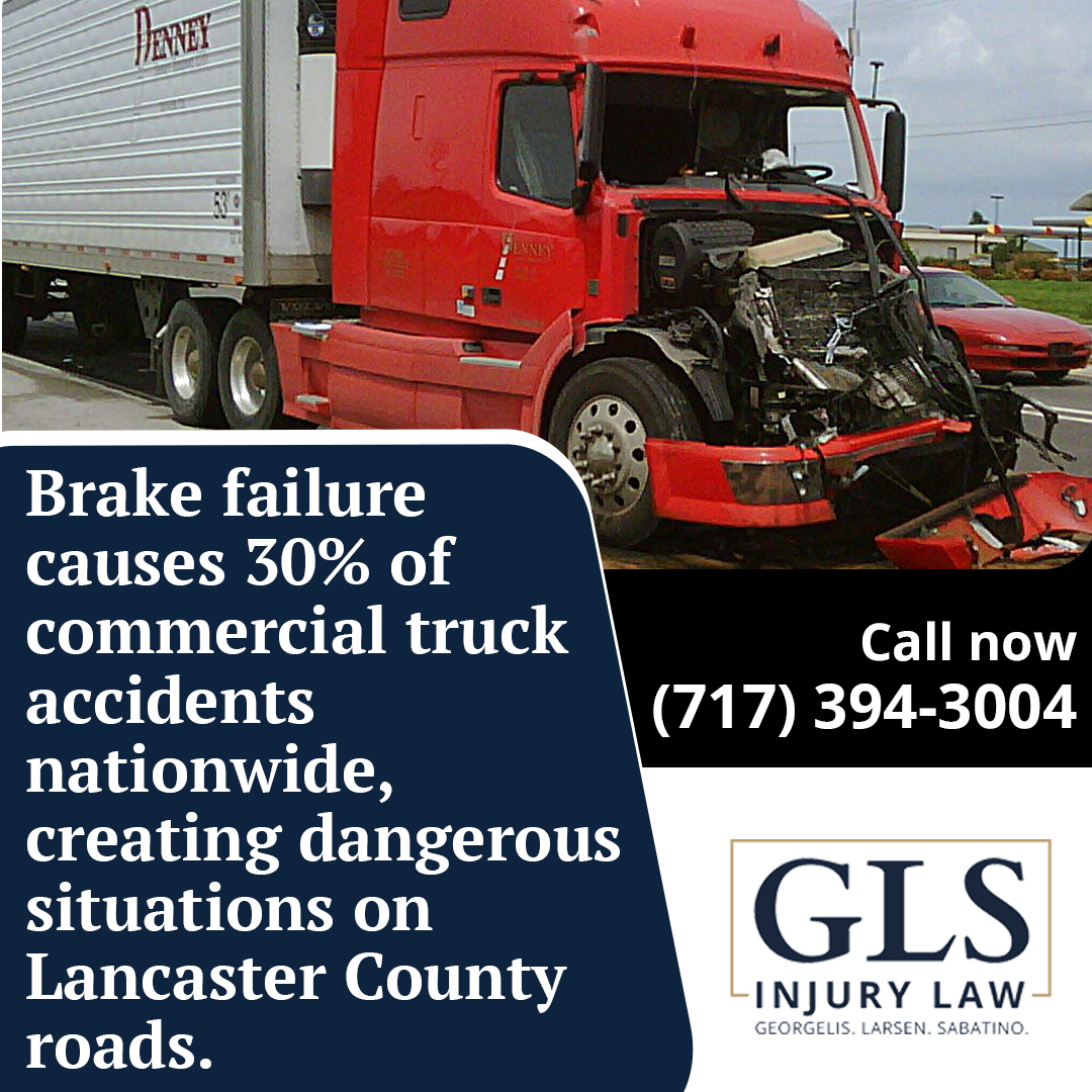 Lancaster, PA–Brake failure accidents involving delivery trucks continue to pose serious risks on Lancaster County roads, prompting GLS Injury Law, P.C., to help victims recover compensation for their injuries. The law firm reports that brake-related problems account for nearly 30 percent of all commercial truck accidents nationwide, making them a leading cause of serious crashes.